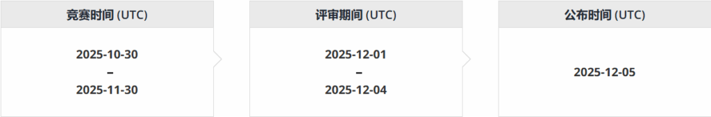 - 比赛时间为 2025年10月30日 (UTC) 至 2025年11月30日 (UTC) 。